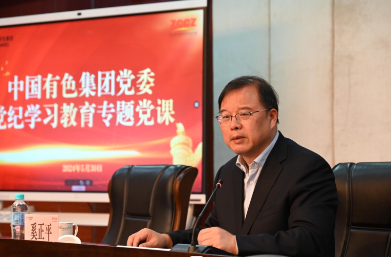 5月30日,中國有色集團(tuán)黨委舉辦黨紀(jì)學(xué)習(xí)教育專題黨課會議。黨委書記、董事長奚正平以《知行知止 知止而行 為當(dāng)好“兩個主力軍”提供堅強(qiáng)紀(jì)律保障》為題,結(jié)合所學(xué)所思所悟,為廣大黨員干部講授黨紀(jì)學(xué)習(xí)教育專題黨課。他強(qiáng)調(diào),要深入學(xué)習(xí)領(lǐng)會習(xí)近平總書記關(guān)于加強(qiáng)黨的紀(jì)律教育的重要論述,全面深刻把握黨的“六大紀(jì)律”主旨要義和規(guī)定要求,切實把黨紀(jì)學(xué)習(xí)成效轉(zhuǎn)化為集團(tuán)公司高質(zhì)量發(fā)展成果。