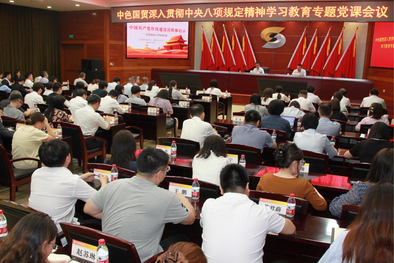 中色國(guó)貿(mào)舉辦深入貫徹中央八項(xiàng)規(guī)定精神學(xué)習(xí)教育專題黨課,引導(dǎo)廣大黨員干部職工充分認(rèn)識(shí)到自身的責(zé)任和使命,持之以恒、與時(shí)俱進(jìn)抓好作風(fēng)建設(shè),以優(yōu)良作風(fēng)護(hù)航公司高質(zhì)量發(fā)展。