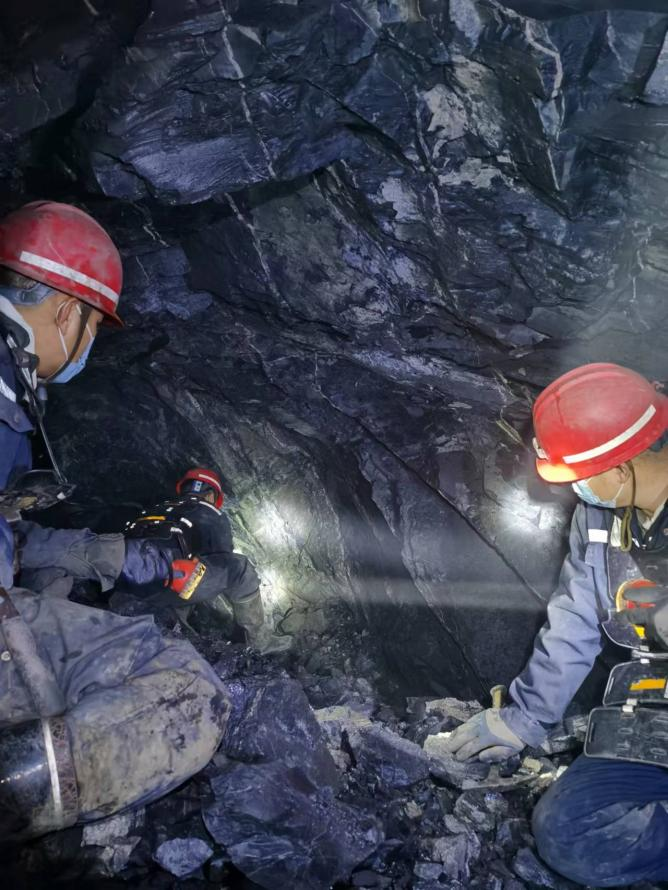 ?????????????????????????????圖丨赤峰大井子礦業(yè)二采區(qū)技術室地測組成員現場勘查揭露礦體具體狀態(tài)數據