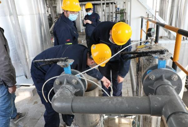 圖丨中色鋅業(yè)“推進環(huán)保治理”青年突擊隊隊員協同配合、研究技術問題