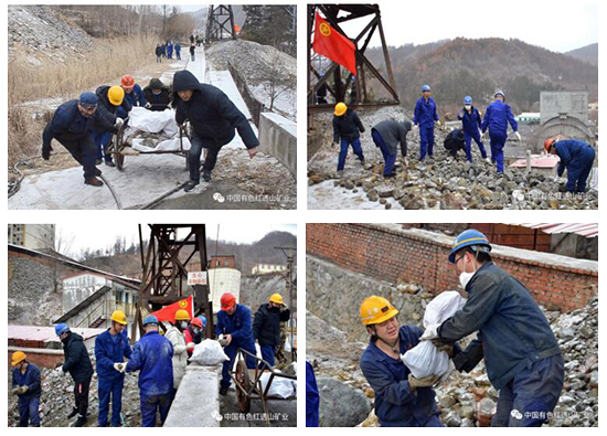 中色紅透山團(tuán)員青年回收礦斗運(yùn)輸過(guò)程中灑落的礦石