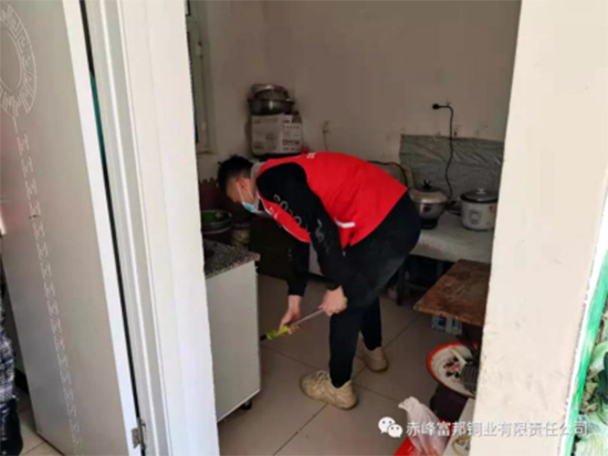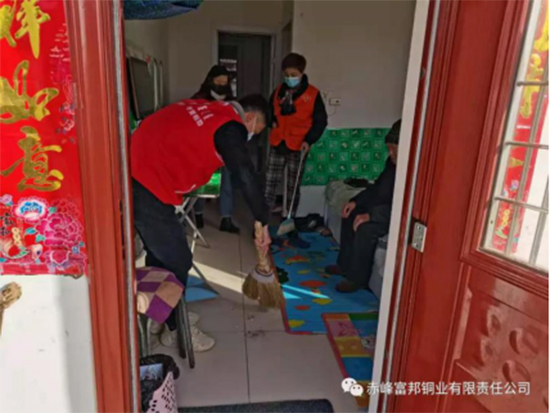 中色沈礦富邦銅業(yè)青年志愿者對(duì)孤寡老人的住所進(jìn)行清掃