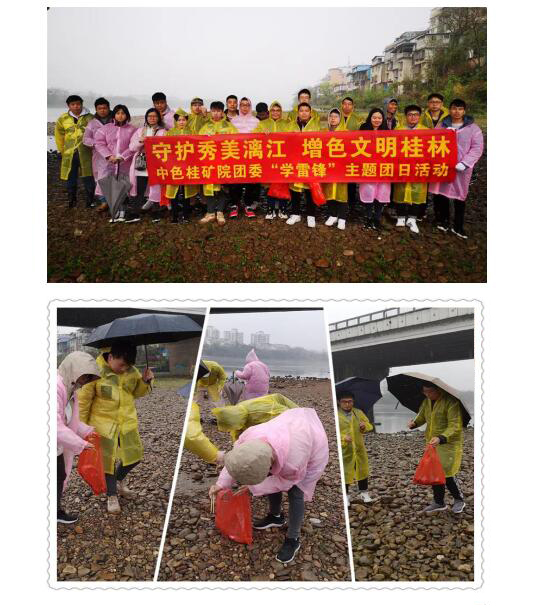 為進(jìn)一步傳承雷鋒精神,3月5日,中色桂礦院團(tuán)委組織團(tuán)員青年開展了以“守護(hù)秀美漓江、增色文明桂林”為主題的學(xué)雷鋒主題團(tuán)日活動(dòng)。來(lái)自中色桂礦院7個(gè)團(tuán)支部的22名團(tuán)員青年積極響應(yīng),迅速行動(dòng),到漓江邊虞山橋至伏波山江段沿線,撿拾江邊的煙頭、塑料等垃圾。雖然桂林下著蒙蒙細(xì)雨,但他們熱情不減、干勁十足。