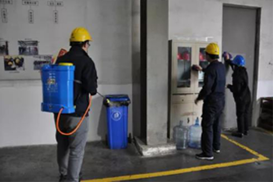 中色特材擠壓分公司青年志愿者進(jìn)行清潔消殺