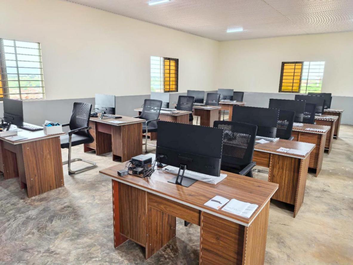 職教中心建筑面積1600㎡,共有教室間6間、辦公室1間、電腦室1間、門衛(wèi)房1間,教室配有臺式電腦、筆記本電腦、縫紉機、講課桌等,并配有教師辦公室、會議室、標準廁所、水井、操場等全套設(shè)施。