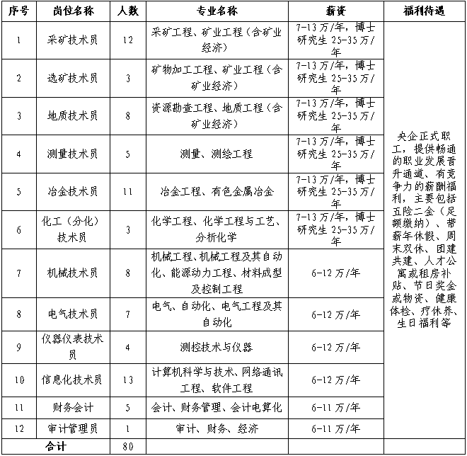 通過提供卓越的職業(yè)發(fā)展晉升通道、有競爭力的薪酬體系、多樣化的福利補貼,招聘選拔培養(yǎng)一批高度契合公司價值觀、真正熟悉有色行業(yè)技術和業(yè)務、推動并實現戰(zhàn)略落地的后備干部管理者。