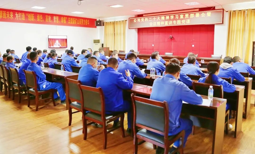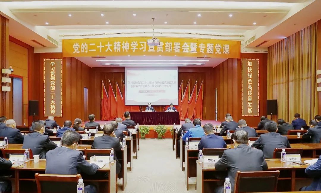 ????11月7日,在公司職教中心學(xué)術(shù)報(bào)告廳,公司召開(kāi)黨的二十大精神學(xué)習(xí)宣貫部署會(huì)暨專題黨課。公司黨委書(shū)記、董事長(zhǎng)、總經(jīng)理王焱以《學(xué)習(xí)貫徹黨的二十大精神 加快綠色高質(zhì)量發(fā)展 勇做集團(tuán)打造世界一流企業(yè)“排頭兵”》為題講專題黨課。公司黨委副書(shū)記、工會(huì)主席王勃就公司黨的二十大精神學(xué)習(xí)宣傳貫徹工作進(jìn)行了安排部署。