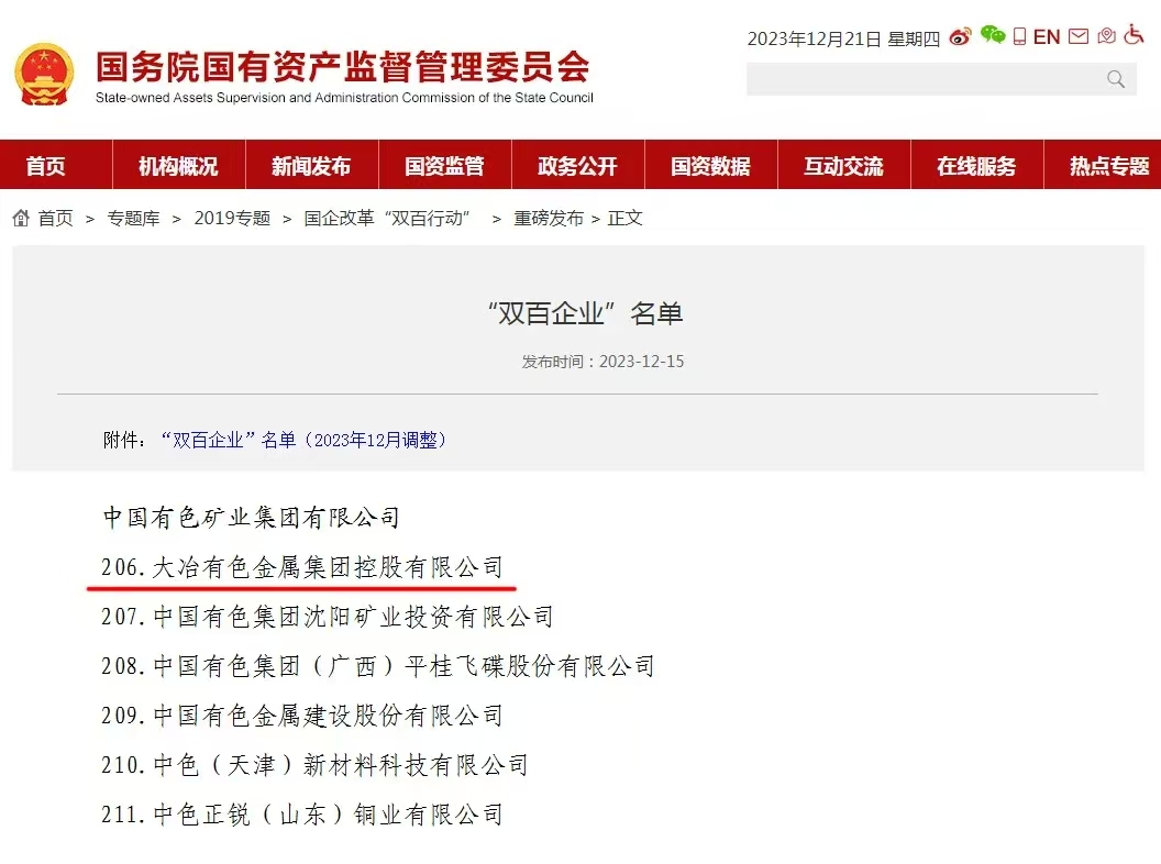 大冶有色獲評“雙百企業(yè)”