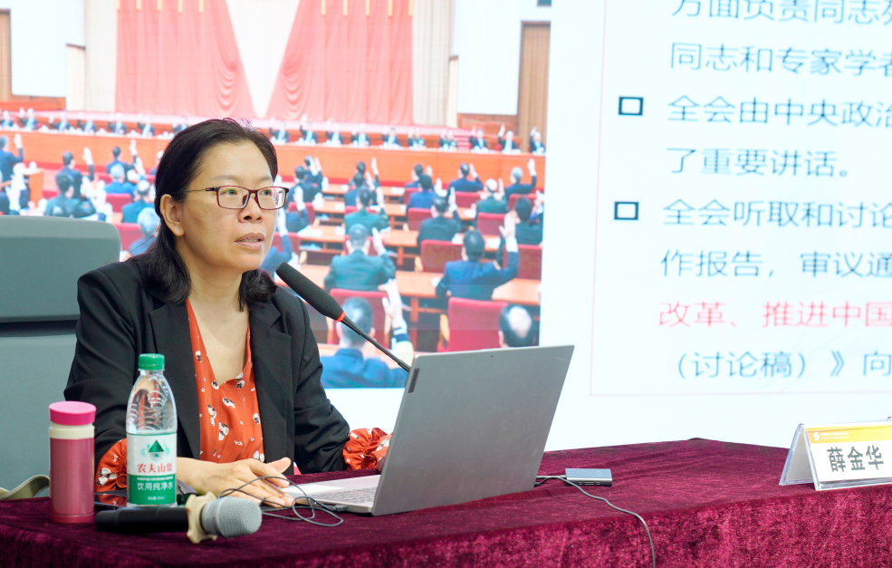 開(kāi)班儀式后,特邀武漢市委黨校教授薛金華以《堅(jiān)持好運(yùn)用好黨的創(chuàng)新理論的世界觀和方法論推動(dòng)進(jìn)一步全面深化改革》為題,深入解讀了黨的二十屆三中全會(huì)精神。